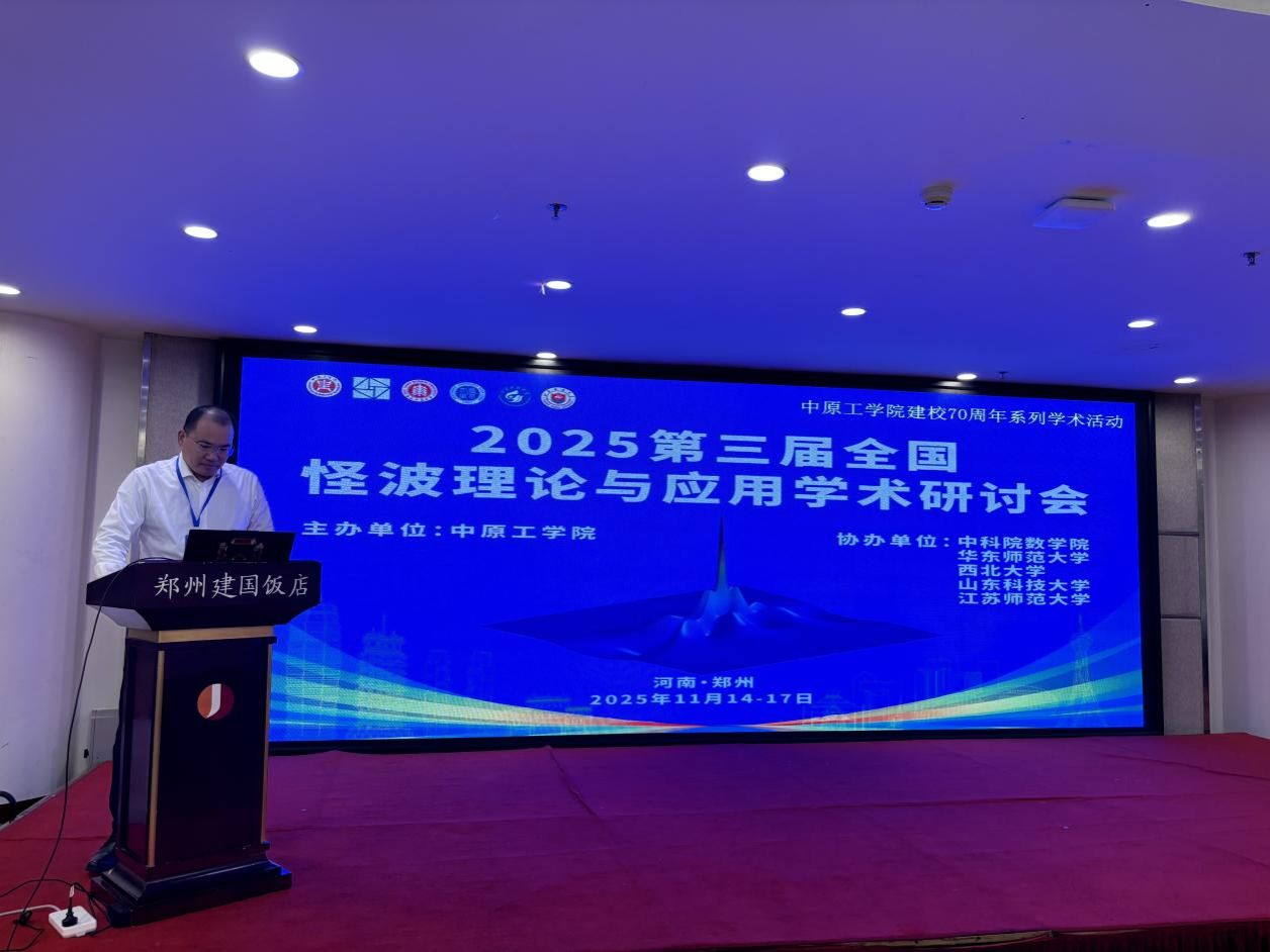 11月14日至16日,由中原工学院主办,中国科学院数学与系统科学研究院、华东师范大学、西北大学、山东科技大学及江苏师范大学联合协办的“第三届全国怪波理论与应用学术研讨会”在郑州召开。本次会议是中原工学院70周年校庆系列学术活动之一,旨在聚焦怪波系统及相关数学理论方法的国际前沿议题与国家重大发展需求,搭建多学科交叉融合平台,促进新思想、新理论、新方法、新技术与新应用的深度交流,推动国内怪波理论研究及其交叉领域应用的创新发展。来自清华大学、复旦大学、上海交通大学、中国科学院等100余所高校及科研院所的300余位专家学者齐聚一堂,共话学术前沿。